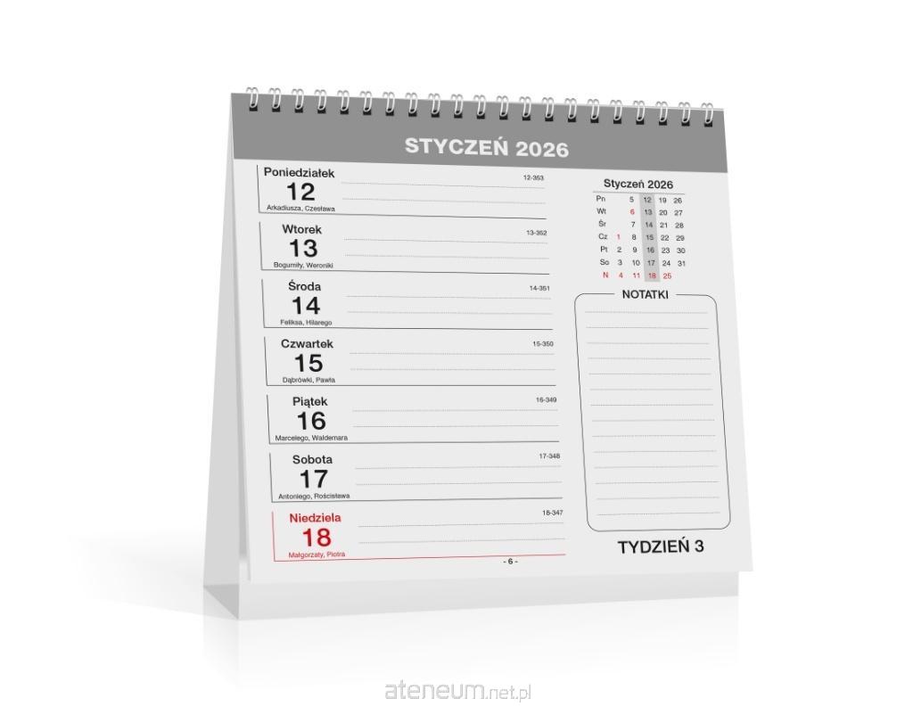 Kalendarz 2026 biurkowy tygodniawy pionowy MIX