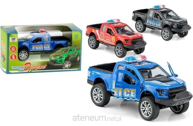 Wybierz swój ulubiony metalowy terenowy pojazd służb specjalnych! Oferujemy solidnie wykonane modele typu die-cast w trzech atrakcyjnych kolorach: dynamiczny radiowóz policyjny w niebieskim kolorze z napisem "POLICE", gotowy do akcji wóz strażacki w intensywnym czerwonym odcieniu z detalami "911" i "FIRE ALARM", oraz stylowy pick-up w eleganckim czarnym kolorze. Każdy pojazd charakteryzuje się realistycznymi detalami, takimi jak opony z bieżnikiem i precyzyjnie odwzorowane nadwozie, co pobudzi wyobraźnię Twojego dziecka. Solidna, metalowa konstrukcja gwarantuje trwałość i odporność na intensywną zabawę. Te pojedyncze pojazdy to doskonały sposób na rozbudowanie kolekcji małego fana motoryzacji i służb mundurowych. Zbierz je wszystkie trzy, aby tworzyć jeszcze bardziej ekscytujące scenariusze zabaw! Idealny jako drobny upominek lub dodatek do większego prezentu.