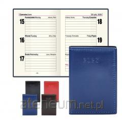 Kalendarz kieszonkowy w twardej skóropodobnej oprawie z zatrzaskiem. Układ kalendarium 4-dniowy.200 stron. Wymiary 92x150 mm
