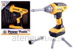1x wiertarka (2x baterie AA) - Baterie nie są dołączone!2x młotek1x dwustronny klucz oczkowy1x grzechotka1x piła1x śrubokręt z wymienną nasadką1x klucz nasadowy1x liniał przesuwny2x klucz francuski1x szczypcehaczyki do zawieszania narzędzi + inne akcesoria + naklejki z obrazkami