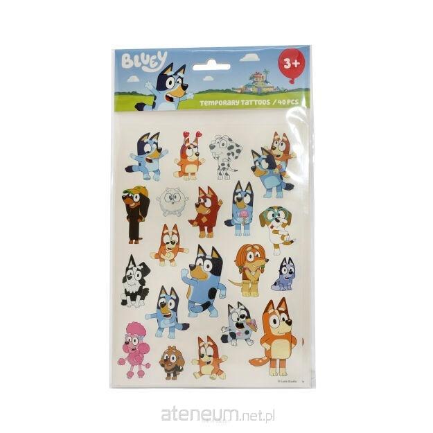 Zestaw zmywalnych tatuaży z wizerunkami postaci ze znanej dzieciom kreskówki Bluey zawiera dwie karty z czterdziestoma kolorowymi tatuażami. Zabawka jest bezpieczna dla dzieci i wyjątkowo łatwa w użyciu. Wystarczy zmoczyć wybrany obrazek wodą i przykleić na skórę. Uśmiech na twarzy Twojego dziecka gwarantowany!