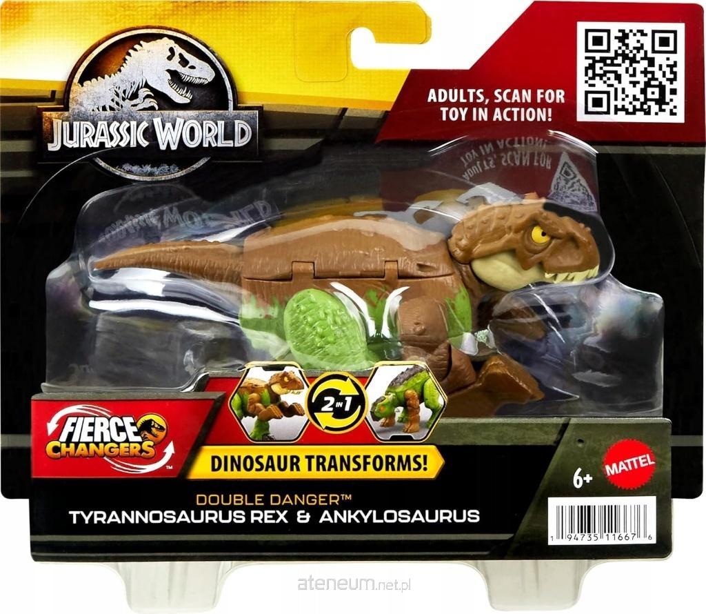 Te figurki Fierce Changers Double Danger z linii Jurassic World Double Danger zapewniają wielbicielom dinozaurów podwójną dawkę zabawy. Roślinożercy przekształcają się w drapieżniki i z powrotem w 11 prostych krokach! Dostępne są 4 różne figurki dwa w jednym. Tyranozaur zamienia się w Ankylozaura o 2 różnych wersjach wyglądu. Karnotaur staje się Stegozaurem, a Barionyks przekształca w Parazaurolofa. Każda figurka ma cechy charakterystyczne dla danego gatunku. To świetna zabawka z transformacją dla dzieci w wieku od 6 lat. (Figurki sprzedawane oddzielnie).