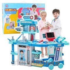 Zestaw z komórką jest jednym z najbardziej okazałych z całej serii lekarskiej. Zawiera on kompletne i niezbędne wyposażenie każdego medyka. Czerwona walizeczka wykonana jest z bardzo trwałego tworzywa, posiada wygodny uchwyt do noszenia oraz żółty klips, który zabezpiecza ją przed otwieraniem się. Z przodu pod transparentną pokrywą znajduje się zabawkowy telefon komórkowy, który musi zawsze być pod ręką. Ten zestaw zawiera aż 14 elementów. Wszystkie elementy są oczywiście bezpieczne dla dzieci i proste w użyciu. W walizeczce znajdują się czerwono-niebieski plastikowy stetoskop, zabawkowy telefon komórkowy (wymagane użycie baterii, których brak jest w zestawie), strzykawka, termometr, nożyczki, otoskop, młoteczek, plaster, identyfikator, opaska pielęgniarska, pudełeczko na watę opatrunkową, recepta, karta pomiarów medycznych. Seria zestawów i akcesoriów lekarskich z jednej strony służy zabawie w doktora czy pielęgniarkę, a z drugiej strony pomaga dzieciom oswoić się z tematem wizyty u lekarza, wykonywanych badań i zabiegów. Mamy tutaj szeroki wybór zestawów z większą lub mniejszą ilością akcesoriów oraz szereg pojedynczych produktów jak np. fartuchy lekarskie czy stetoskopy. Cała seria wizualnie stworzona jest tak, aby mogli się nią bawić zarówno chłopcy jak i dziewczynki.