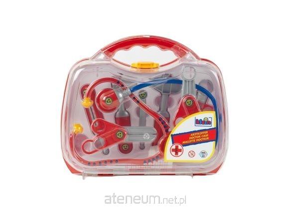Zestaw w walizce transparentnej zawiera podstawowe, niezbędne wyposażenie każdego medyka. Tylna ścianka walizeczki jest koloru czerwonego, natomiast przód jest transparenty przez co widać wszystko co znajduje się na wyposażeniu małego medyka. Walizka wykonana jest z bardzo trwałego tworzywa, posiada wygodny uchwyt do noszenia oraz żółty klips, który zabezpiecza ją przed otwieraniem się. Ten niewielki zestaw zawiera aż 13 elementów. Wszystkie są oczywiście bezpieczne dla dzieci i proste w użyciu. W walizeczce znajdują się czerwono-granatowy plastikowy stetoskop, nożyczki plastikowe, szczypce, strzykawka, termometr, otoskop, młoteczek, plaster, penseta i notatnik. Wszystkie elementy są oczywiście bezpieczne dla dzieci i proste w użyciu. Seria zestawów i akcesoriów lekarskich z jednej strony służy zabawie w doktora czy pielęgniarkę, a z drugiej strony pomaga dzieciom oswoić się z tematem wizyty u lekarza, wykonywanych badań i zabiegów. Mamy tutaj szeroki wybór zestawów z większą lub mniejszą ilością akcesoriów oraz szereg pojedynczych produktów jak np. fartuchy lekarskie czy stetoskopy. Cała seria wizualnie stworzona jest tak, aby mogli się nią bawić zarówno chłopcy jak i dziewczynki.