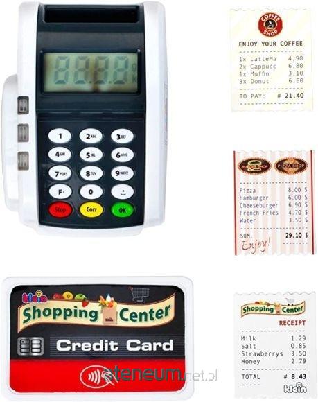 Terminal płatniczy stworzona przez firmę Klein, jest w kolorze biało-szarym z czarnym pulpitem klawiatury. Zabawka wykonana jest z plastiku wysokiej jakości i ma wiele funkcji, które zainteresują każdego małego właściciela sklepu. Ten dodatek do zabawkowych kas wnosi powiew nowoczesnej technologii do pokoju dziecięcego. Płatności bezdotykowe stają się tutaj formą zabawy, ale i nauki rzeczywistości. Terminal płatniczy do złudzenia przypomina prawdziwe urządzenie. Posiada działające przyciski oraz czujnik płatności zbliżeniowych. Podczas użytkowania emituje delikatnie światełko oraz wydaje dźwięki. Podczas zabawy wystarczy wprowadzić i potwierdzić kwotę, przyłożyć kartę do terminala, wprowadzić i potwierdzić PIN, i płatność gotowa. Przesuwaniu dołączonej do zestawu karty kredytowej przez czytnik towarzyszą realistyczne odgłosy, jak w prawdziwym urządzeniu. Do właściwej zabawy wymagane jest użycie baterii, które nie są częścią zestawu. W zestawie z terminalem jest jedna 1 karta kredytowa z funkcją płatności zbliżeniowych, a także 3 zabawkowe paragony. Rozmowy z klientami przy nowoczesnym terminalu płatniczym uczą dzieci umiejętności komunikacyjnych, a manipulowanie kartą kredytową wspomaga rozwój motoryczny.