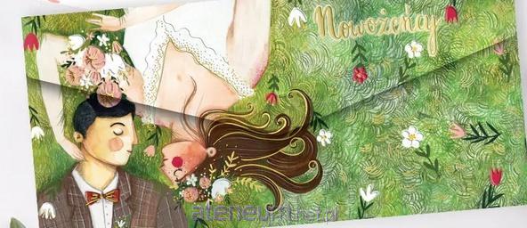 Ozdobna koperta na pieniądze, złocona i tłoczona. W zestawie wkałdka z życzeniami oraz koperta ochronna.
