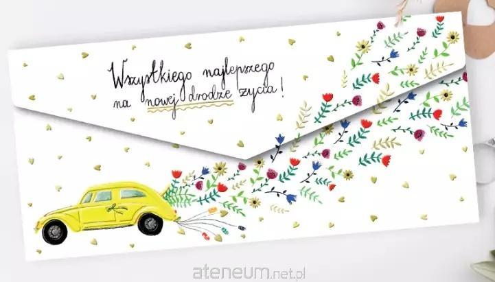 Ozdobna koperta na pieniądze, złocona i tłoczona. W zestawie wkałdka z życzeniami oraz koperta ochronna.