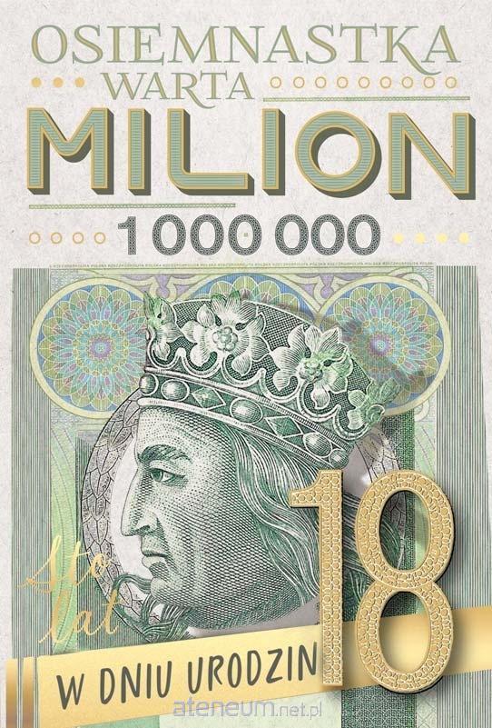 Kartka Dream Cards na Osiemnastkę "Osiemnastka warta milion" DK-1289 Kartka B6 z ozdobnej serii Dream Cards - nieduża, ale robi wrażenie dzięki atrakcyjnej kolorystyce i ciekawym zdobieniom. To idealny wybór łączący przyjazną cenę z jakością. Cechy szczególne: wielkość: B6, 16.6 x 11.7 cm po złożeniu, koperta: w zestawie, kolorowa, zdobienia: kolorowe, różnorodne, bogate (w zależności od wzoru: przyklejane dekoracje, elementy biżuteryjne, odstawniki, metaliczne folie, tłoczenia itp.), okazja: osiemnastka, urodziny