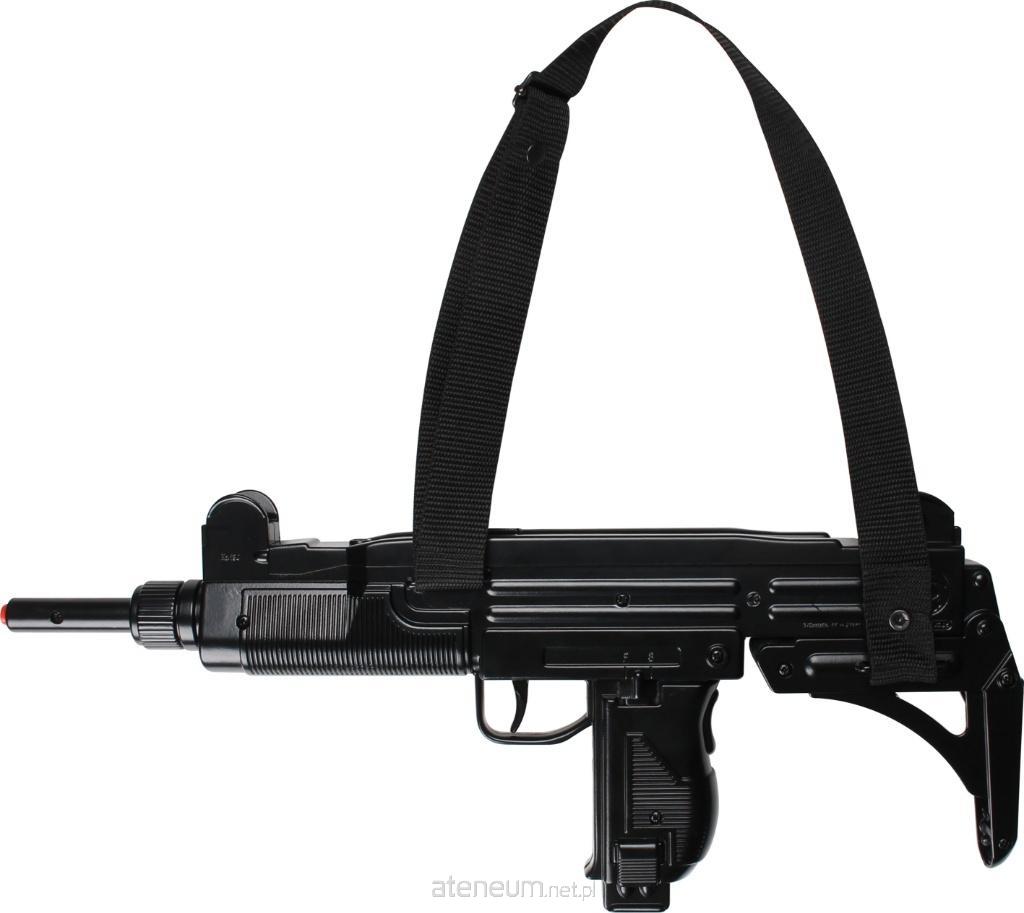 Metalowy karabin maszynowy na pasku na 12 naboi. Wiek: 3+. Wymiary: 47x19,5cm. Szt./karton: 6