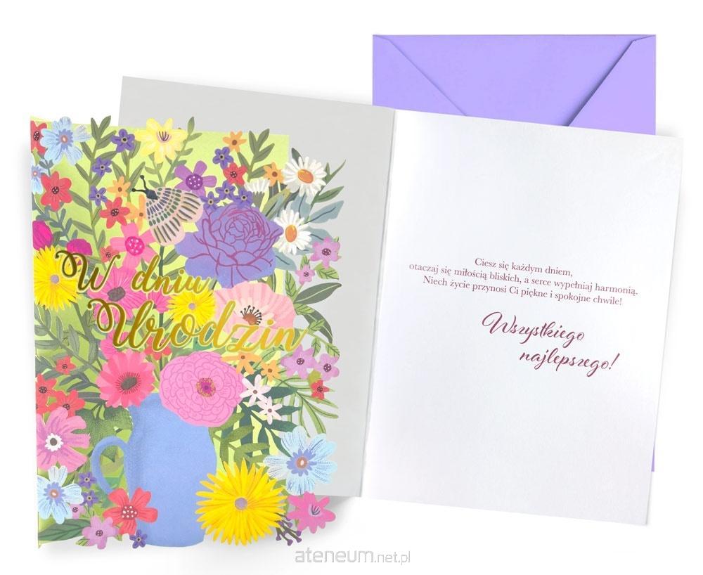Kartka Dream Cards "W dniu urodzin" DK-1279 Kartka B6 z ozdobnej serii Dream Cards - nieduża, ale robi wrażenie dzięki atrakcyjnej kolorystyce i ciekawym zdobieniom. To idealny wybór łączący przyjazną cenę z jakością. Cechy szczególne: wielkość: B6, 16.6 x 11.7 cm po złożeniu, koperta: w zestawie, kolorowa, zdobienia: kolorowe, różnorodne, bogate (w zależności od wzoru: przyklejane dekoracje, elementy biżuteryjne, odstawniki, metaliczne folie, tłoczenia itp.), okazja: urodziny