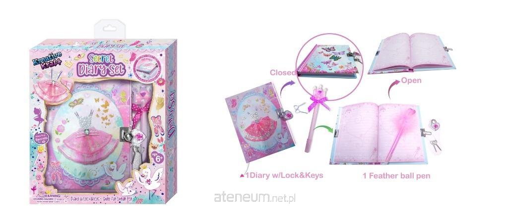 Zestaw zawiera: - pamiętnik z kartkami w linie zamykany na kłódeczkę - 2 kluczyki - ozdobny długopis Zapakowany w ozdobne opakowanie prezentowe.
