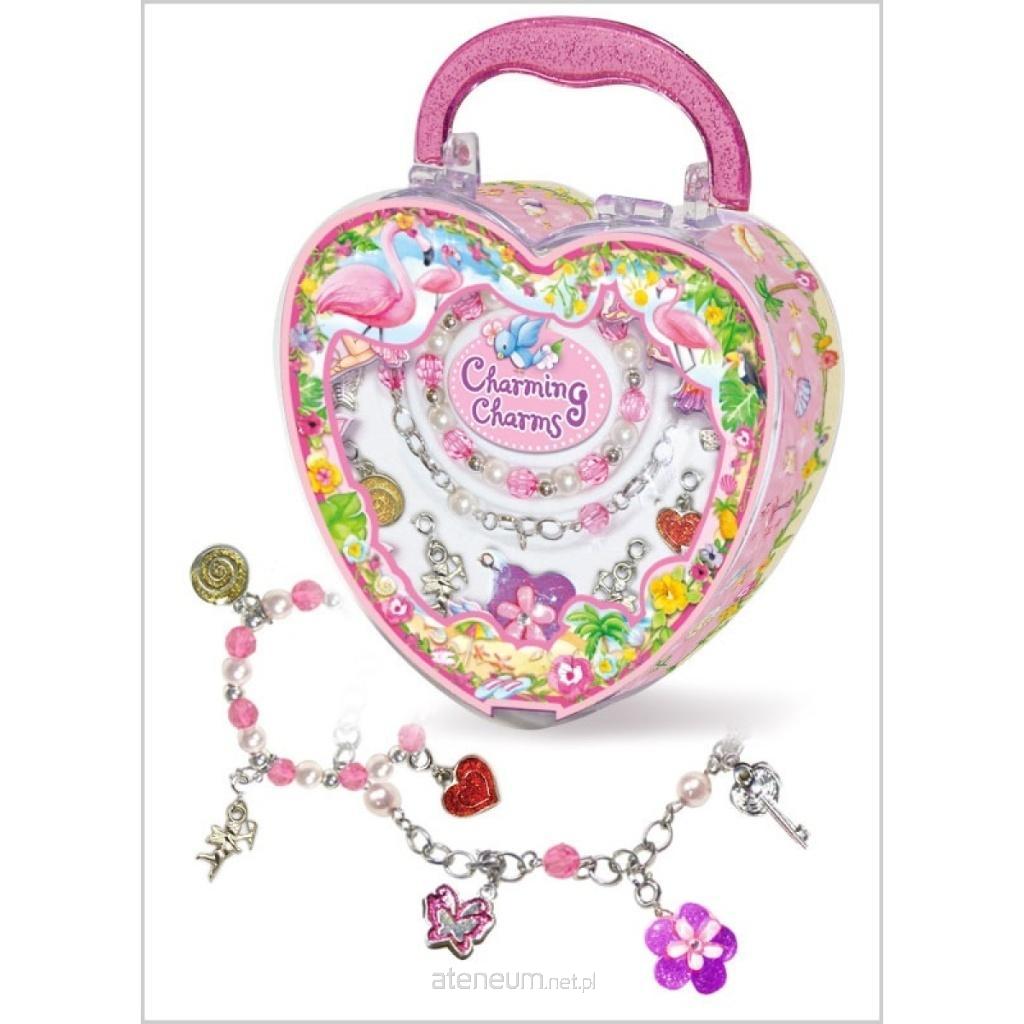 Zestaw naszyjnik + bransoletka oraz 7 zawieszek typu charms do dowolnego ozdabiania. Zapakowany w ozdobne plastikowe pudełko serduszko z uchwytem. Wiek: 6+
