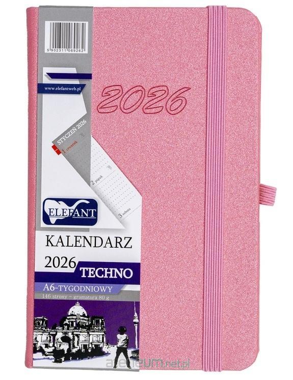 Kalendarz 2026 A6 tygodniowy Techno różowy