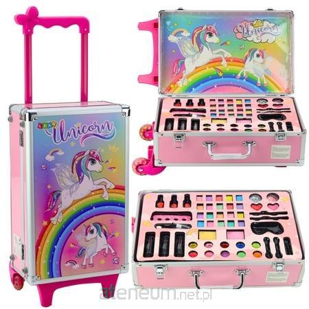 ZESTAW PIĘKNOŚĆI DO MAKIJAŻU W WALIZCE NA KÓŁKACH JEDNOROŻEC Zestaw kosmetyków dla dzieci w walizce jednorożec to idealny produkt dla każdej małej miłośniczki makijażu i zabawy w stylizację. Duża, kolorowa walizka z grafiką uroczego jednorożca skrywa w sobie kompletny zestaw do makijażu, zaprojektowany specjalnie z myślą o dzieciach. Dzięki wysuwanej rączce i kółkom, dziecko może z łatwością transportować swoją kosmetyczkę w dowolne miejsce - do koleżanki, na wakacje lub po prostu po domu. Produkt nie tylko zapewnia godziny kreatywnej zabawy, ale także wspiera rozwój wyobraźni i zdolności manualnych. Wszystkie kosmetyki znajdujące się w zestawie są całkowicie bezpieczne dla dziecięcej skóry, łatwo się zmywają i zostały wykonane z myślą o najmłodszych użytkownikach. Walizka jest solidnie wykonana, z dbałością o detale, co sprawia, że będzie służyła przez długi czas. To świetny pomysł na prezent urodzinowy, świąteczny lub na Dzień Dziecka - każda dziewczynka będzie zachwycona możliwością stworzenia własnego mini salonu piękności. SPECYFIKACJA: Wymiary walizki: 46,5 x 25,5 x 17,5 cm Materiał walizki: aluminium, tworzywo sztuczne, elementy tekstylne Wzór: Jednorożec Kolor Różowy ZAWARTOŚĆ ZESTAWU: Duża walizka z grafiką jednorożca Zestaw bezpiecznych kosmetyków i akcesoriów
