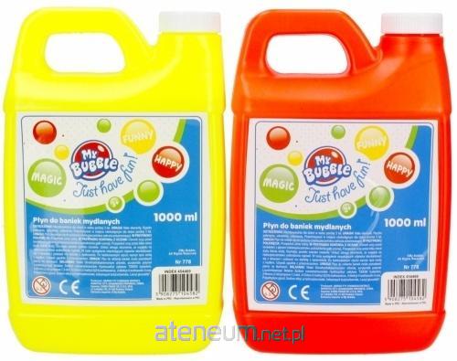 Płyn do baniek mydlanych My Bubble idealnie nadaję się do uzupełnienia pistoletów, mieczy do robienia baniek lub innych maszynek i przyrządów. Jest bardzo wydajny i bezpieczny dla dzieci! Płyn w butelce o pojemności 1000 ml. Występują w dwóch wersjach kolorystycznych: żółtym oraz pomarańczowym.Towar wysyłany losowo. Należy chronić oczy przed kontaktem z płynem. Opakowanie wykonane z plastiku. Bańki przeznaczone dla dzieci w wieku: 3+.