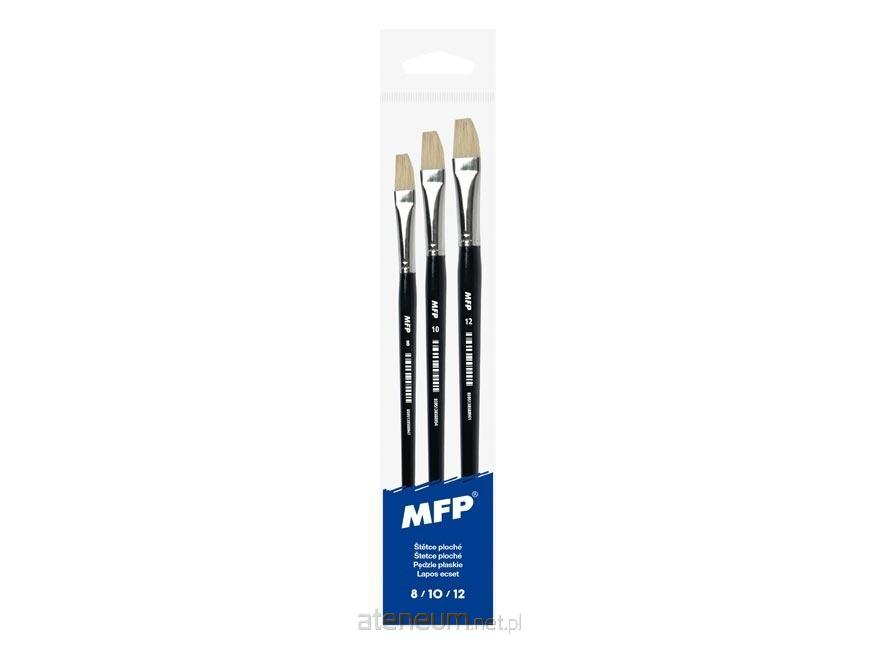 Pędzel szkolny płaski, ze szczeciny naturalnej (świńskiego włosia), zestaw 3 sztuk - trzy rozmiary: 8, 10, 12.
