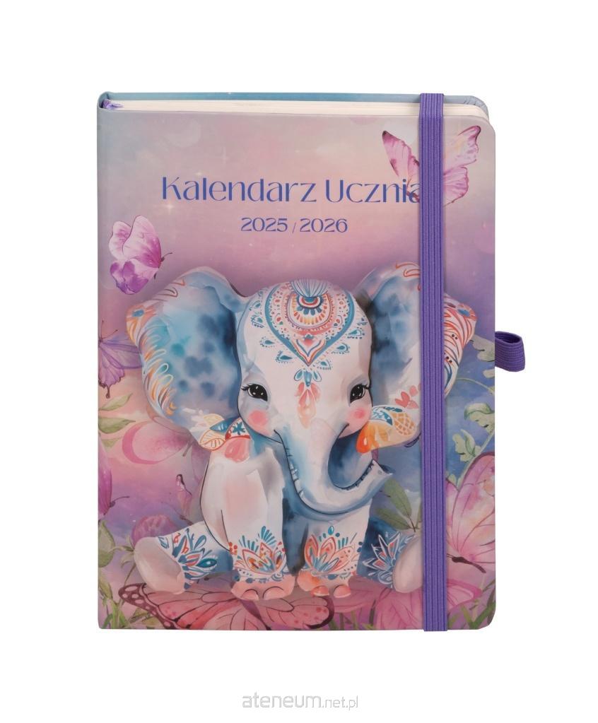 Wnętrze: tydzień na stronie Liczba stron: 180, Gramatura papieru: 80 g/cm2,Papier: chamois,Okładka: twarda, Pionowa gumka zamykająca,Zakres dat:wrzesień 2025 sierpień 2026, Dodatki szkolne:, Plan zajęć, Tabela ocen, Prace domowe, Sprawdziany, Zebrania z rodzicami,Wycieczki, Zajęcia pozalekcyjne, Wydatki, Lektury,Ważne wydarzenia oraz kolorowanki