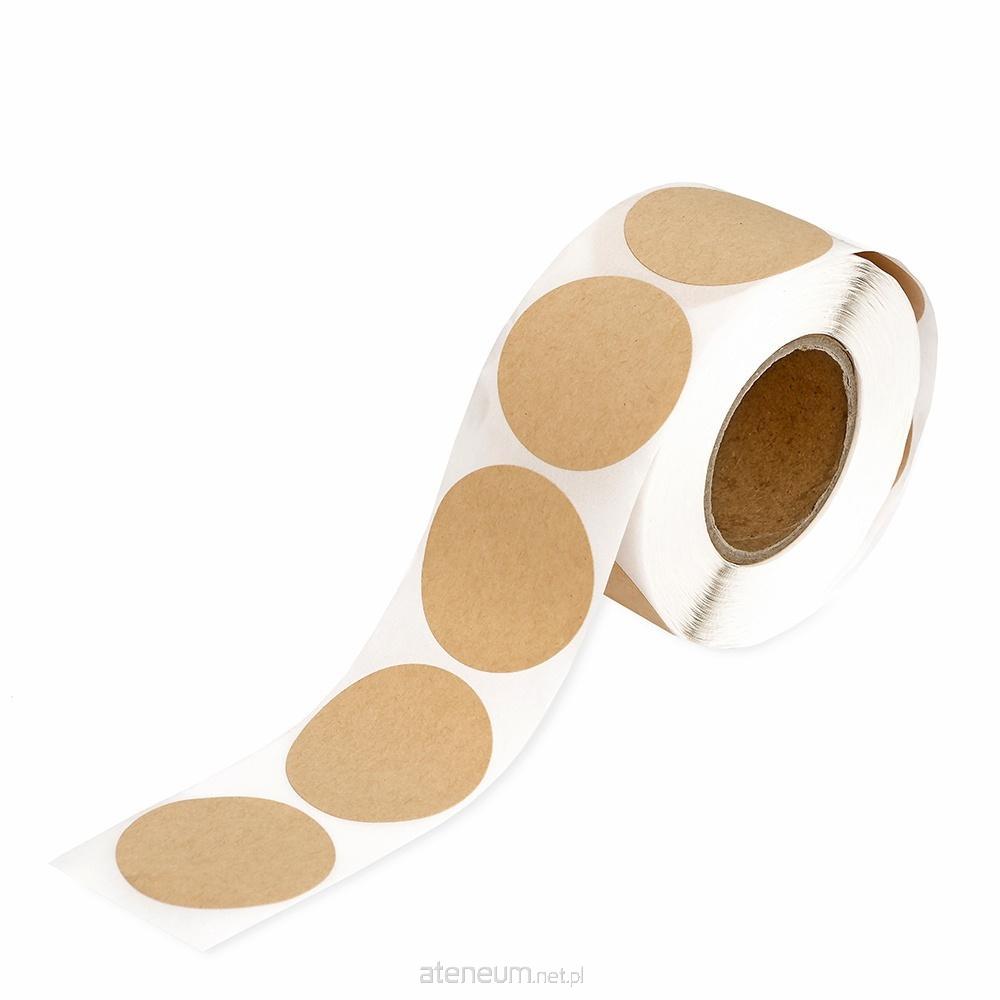 Naklejki na rolce w formie dużych kół o średnicy 3,8 cm w naturalnym kolorze kraft, dostępne w opakowaniu po 100 sztuk.
