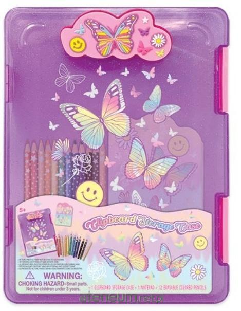 Plastikowa sztywna teczka zamykana na zatrzaski do schowania kartek, rysunków, drobiazgów czy akcesoriów do malowania. Zmieści rozmiar A4. Teczka na przodzie ma ozdobny klips, dzięki któremu można użyć jej również jako podkładki do pisania lub malowania. W zestawie 12 kolorów kredek ołówkowych oraz mini-notes z czystymi kartkami. Idealny zestaw do rozpoczęcia przygody z malowaniem dla małego artysty! Wiek: 5+