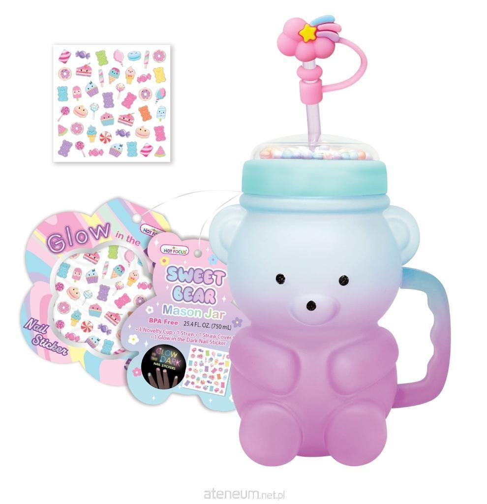 Kubek z uchem o pojemności 750ml wykonany z grubego plastiku z uchem. Zakręcany wypukłą nakrętką z ozdobami dzięki czemu napój się z niego nie wyleje. Pod kopułą nakrętki znajdują się kolorowe koraliki dla dodatkowego dekoracyjnego efektu. Do kubka dołączona jest wielorazowa słomka oraz arkusz naklejek świecących w ciemności, którymi można dodatkowo ozdobić i wyróżnić swój kubek! Słomkę można zamknąć silikonową zatyczką dla większej higieny. Wiek: 5+.