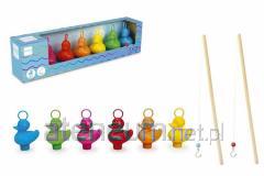 Zestaw zawiera drewnianą ławkę z młotkiem typu huśtawka i drewniany młotek.