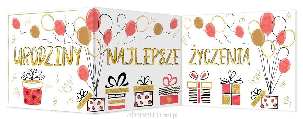 Złocony karnet okolicznościowy w formie harmonijki, koperta w zestawie. Format B6