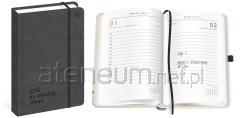 Perforowane narożniki umożliwiają szybkie odnalezienie bieżącej daty. Wewnątrz znajdziesz również tasiemkę do zaznaczania stron oraz strony dodatkowe na notatki, telefony kierunkowe, skorowidz alfabetyczny, imieniny i święta.