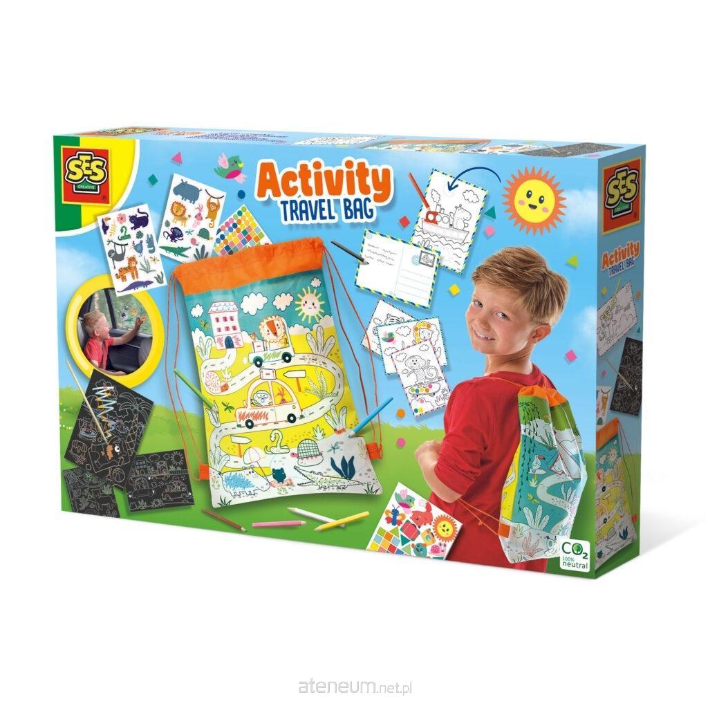 Z torbą podróżną, jednodniowa wycieczka lub wakacje są o wiele przyjemniejsze! Plecak podróżny z zajęciami jest pełen różnych drobiazgów. Baw się zdrapkami, pocztówkami do pokolorowania, kredkami, naklejkami mozaikowymi i naklejkami na okna! A co może najlepsze: możesz pokolorować także torbę podróżną!