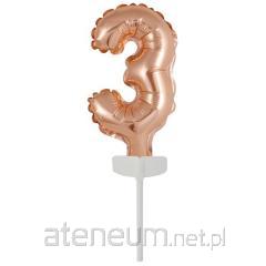 Balon foliowy mini cyfra 3 różowe złoto 7x12cm