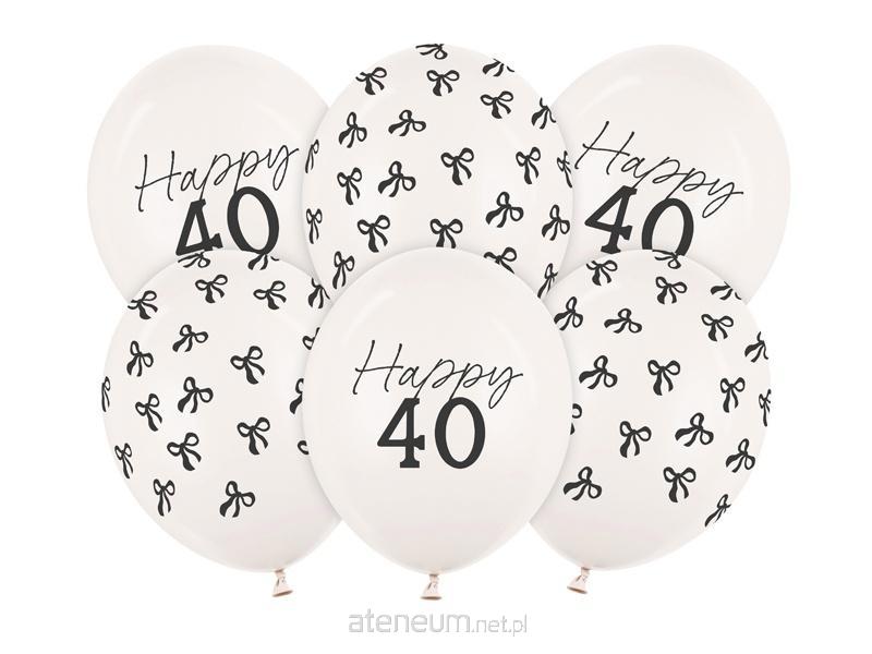 Balony Strong ''40'' w kolorze Pastel Off-white z nadrukiem, średnica ok. 30 cm.(1 op. / 6 szt.)