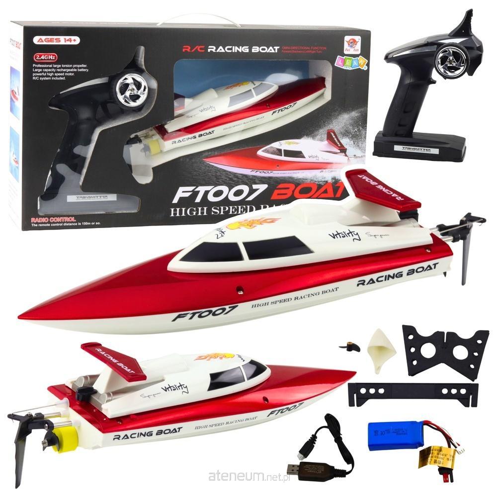 MOTORÓWKA RC FT007 2.4GHz - VITALITY Motorówka zdalnie sterowana FT007 to idealny wybór dla miłośników dynamicznej zabawy na wodzie. Model wykonany w skali 1:16 cechuje się nowoczesnym wyglądem, aerodynamiczną sylwetką oraz solidną konstrukcją odporną na zachlapania. Dzięki zastosowaniu napędu elektrycznego oraz wysokiej jakości akumulatora LiPo, łódź zapewnia szybkie przyspieszenie i stabilną kontrolę podczas pływania. System zdalnego sterowania 2.4GHz umożliwia precyzyjne manewrowanie bez zakłóceń, nawet w obecności innych modeli. Zasięg pilota pozwala na swobodną zabawę na większych akwenach, a specjalny stojak w zestawie umożliwia bezpieczne przechowywanie łodzi po zakończonej jeździe. Motorówka FT007 to doskonała propozycja zarówno dla początkujących, jak i bardziej zaawansowanych użytkowników. Model został wyposażony w wymienną śrubę napędową oraz element wzmacniający dziób, zwiększający trwałość podczas kontaktu z przeszkodami. Całość zapakowana jest w estetyczne pudełko - idealne również na prezent. SPECYFIKACJA: Wymiary łodzi: 35 x 12,5 x 7,5 cm Wymiary opakowania: 49 x 26 x 12,5 cm Skala: 1:16 Napęd: silnik elektryczny szczotkowy Zasilanie: akumulator LiPo Sterowanie: 2.4GHz, 2 kanały Zasięg sterowania: do 150 m Materiał wykonania: tworzywo sztuczne ZAWARTOŚĆ ZESTAWU: Motorówka RC FT007 Pilot zdalnego sterowania 2.4GHz Akumulator napędowy Ładowarka sieciowa 230V Stojak na łódź Zapasowa śruba napędowa Element wzmacniający dziób łodzi Instrukcja obsługi