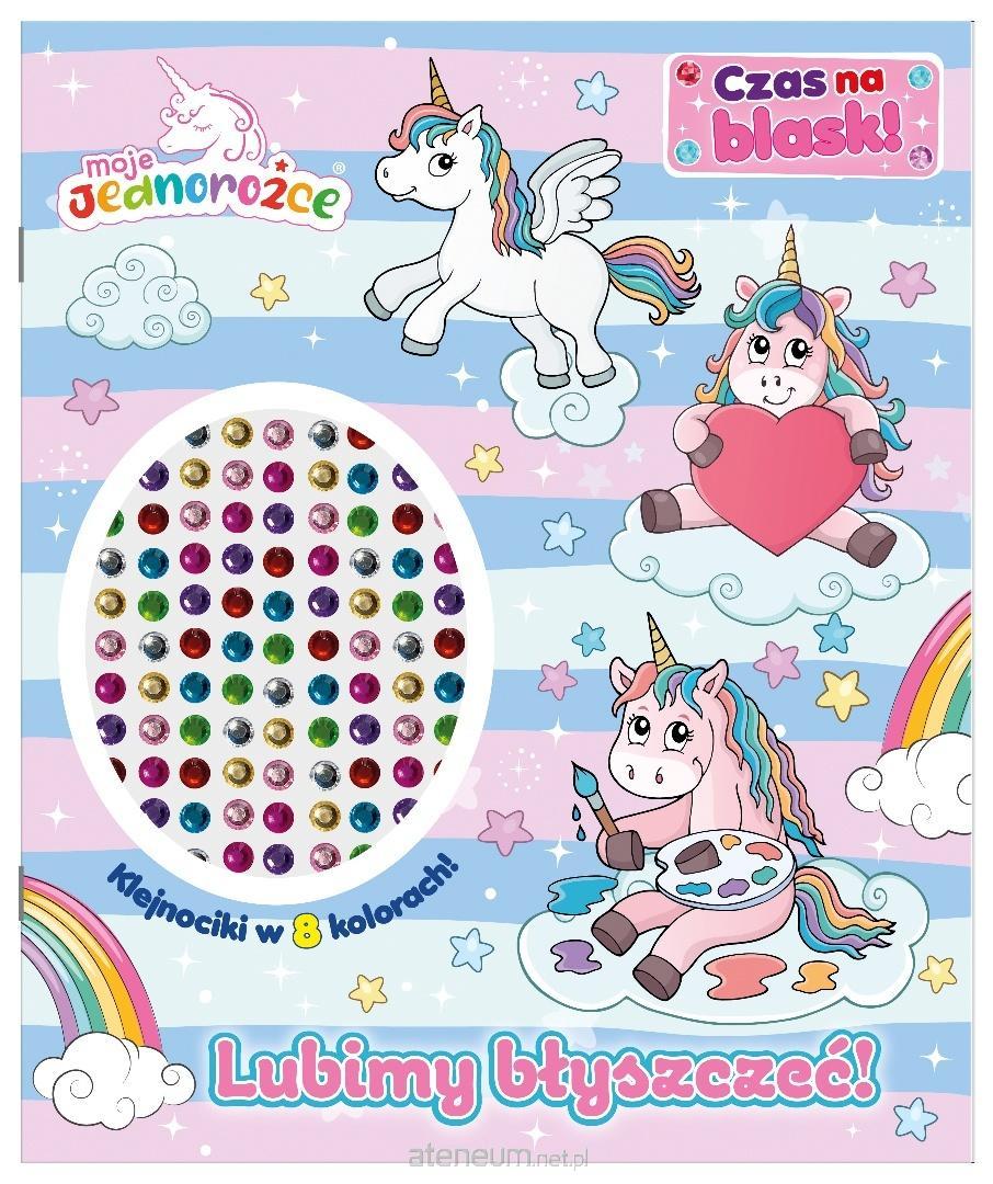 Dołączone klejnociki w 8 ślicznych kolorach pozwolą nadać każdej stronie wyjątkowego blasku. Dziecko może przyklejać je w dowolnych miejscach, tworząc własne, błyszczące kompozycje i ucząc się jednocześnie spostrzegawczości oraz liczenia.