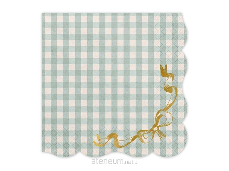 Papierowe serwetki w zieloną kratkę z błyszczącą złotą kokardką. Wymiary po rozłożeniu ok. 33 x 33 cm, wymiary po złożeniu ok. 16.5 x 16.5 cm.(1 op. / 12 szt.)