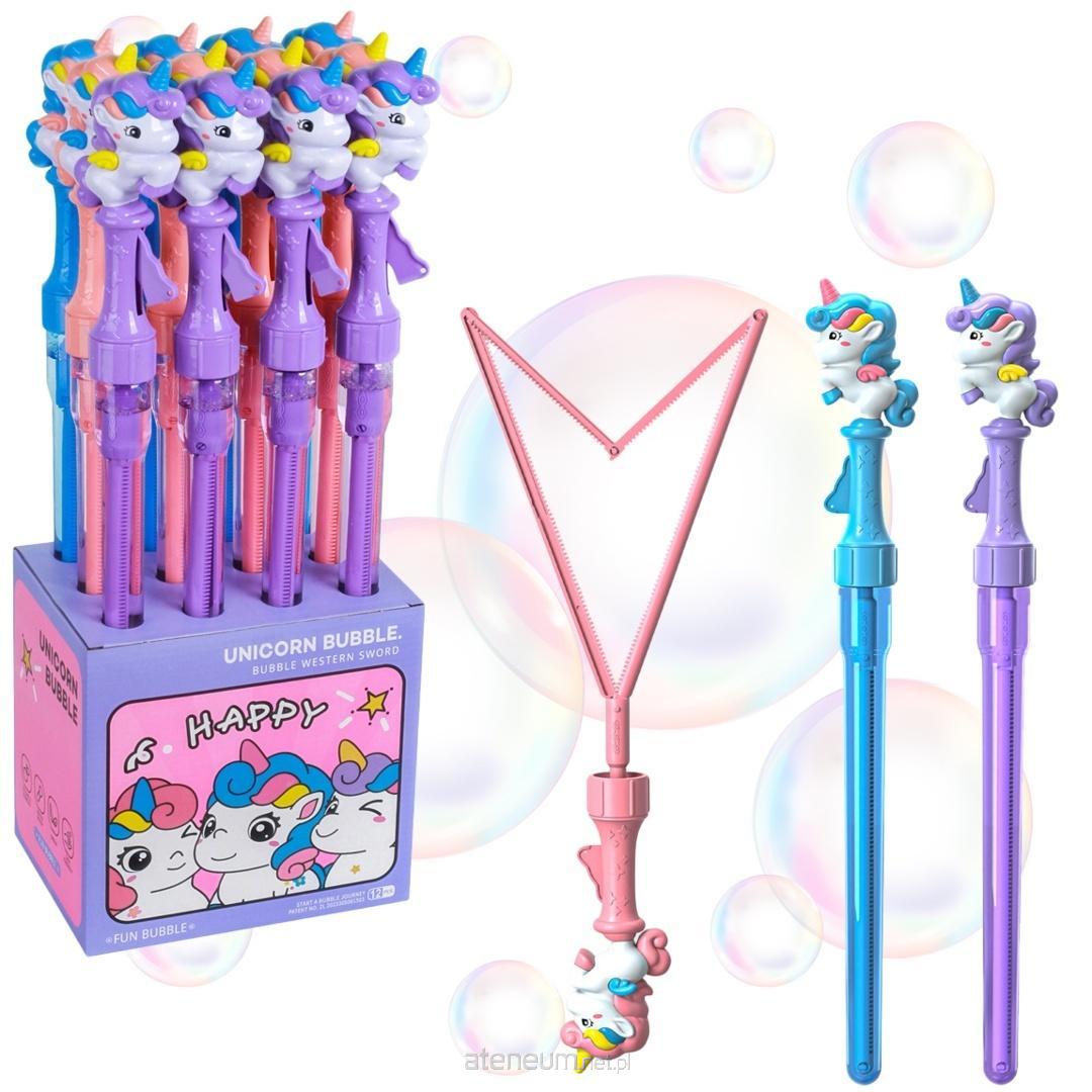 Magiczna Bańka Mydlana Jednorożec - Miecz Bańkowy! Przedstawiamy uroczy i fantastyczny gadżet, który zachwyci każde dziecko - magiczną bańkę mydlaną w kształcie miecza, zwieńczonego figurką jednorożca! To idealna zabawka do ogrodu, na plac zabaw czy do kreatywnej zabawy w domu, która zapewni godziny beztroskiej radości. Główne cechy produktu: Design Jednorożca: Bańka ma formę kolorowego miecza, na którego szczycie znajduje się urocza figurka jednorożca. Dostępne są różne warianty kolorystyczne (niebieski, różowy, fioletowy), z jednorożcami w pastelowych odcieniach, co czyni zabawkę jeszcze bardziej atrakcyjną. Łatwe robienie baniek: Wystarczy zanurzyć końcówkę miecza w płynie do baniek (dołączony do zestawu lub dostępny osobno w buteleczce stanowiącej uchwyt miecza) i machnąć nim, aby stworzyć mnóstwo pięknych, lśniących baniek mydlanych. Duży otwór do baniek: Końcówka miecza, przez którą dmucha się bańki, ma kształt litery "V" lub trójkąta, co pozwala na tworzenie większych i bardziej efektownych baniek. Wbudowany pojemnik na płyn: Uchwyt miecza może służyć jako pojemnik na płyn do baniek, co jest wygodne i zapobiega wylewaniu się. Rozwija kreatywność i aktywność: Zachęca dzieci do zabawy na świeżym powietrzu, biegania i interakcji, jednocześnie pobudzając wyobraźnię. Bezpieczne dla dzieci: Produkt wykonany jest z bezpiecznych, nietoksycznych materiałów. Zalecany wiek: 3+ Wielkość: 50 cm Podaruj dziecku odrobinę magii i radości z tymi pięknymi bańkami mydlanymi w kształcie miecza jednorożca!