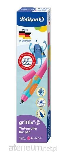 Pióro kulkowe Pelikan Griffix to etap 3 w 4-stopniowym systemie nauki pisania stworzonym przez markę Pelikan. Po opanowaniu rysowania kredkami i pisania ołówkiem, dziecko jest gotowe na kolejny krok rozpoczęcie nauki pisania piórem. Na tym etapie dzieci nadal doskonalą chwyt szczypcowy, a jednocześnie zaczynają przyzwyczajać się do korzystania z narzędzia piśmienniczego z płynnym atramentem. Ponieważ młodsze dzieci mają tendencję do silniejszego naciskania na papier, pióro zostało wyposażone w specjalną końcówkę, która amortyzuje nacisk i umożliwia miękkie, płynne pisanie bez oporu. Widoczna uśmiechnięta buźka na korpusie podpowiada dziecku, że trzyma pióro prawidłowo. Ergonomiczny, trójkątny uchwyt pokryty został gumowaną powierzchnią, dzięki czemu dłoń się nie ślizga, a dziecko uczy się pisać w sposób wygodny i naturalny. Pióro działa na naboje atramentowe kulkowe, co czyni je czystym i łatwym w obsłudze.