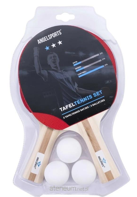 Zestaw do tenisa stołowego Angel Sports - 1 gwiazdka. Zestaw z 2 rakietkami do tenisa stołowego (1 gwiazdka) i 3 plastikowymi piłeczkami, zapakowany w poręczne, przezroczyste, wiszące opakowanie. Idealny do użytku rekreacyjnego i doskonały prezent dla miłośników tenisa stołowego.