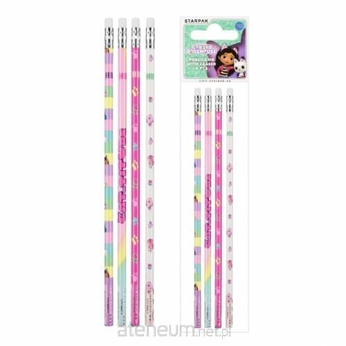 Ołówek nie łamie się podczas strugania, a gumka nie brudzi, ołówki to podstawowy produkt podczas nauki w szkole (rysowanie, matematyka, pisanie), łatwe w struganiu, nie łamią się, nie brudzą, uniwersalna twardość HB, każdy ołówek wyposażony w gumkę do mazania. Zestaw 4 ołówków z gumką z kolekcji STARPAK z licencją Gabby's Dollhouse!.Każdy ołówek zdobiony z kolorową grafiką z ulubionymi bohaterami. Wykonany z trwałego drewna, zapewnia komfort rysowania i pisania. Służy nie tylko do rysowania i szkicowania, ale jest również niezbędny podczas lekcji matematyki, do nauki pisania, do robienia notatek na marginesach książek lub zeszytów. Dlatego tak ważna jest jego jakość. Dzięki wysokiej jakości grafit nie sypie się, nie brudzi i nie kruszy. Twardość HB sprawia, że ołówki STARPAK są uniwersalne i mogą być wykorzystywane zarówno do pisania, jak tez rysowania. Zapoznaj się również z innymi produktami STARPAK z serii Gabby's! Zawartość opakowania: 4 szt. ołówków z gumką. Wykonane z odpornego, nie łamiącego się podczas strugania grafitu. Wymiary/waga: wymiary produktu (dł.)[cm]: 19 cm, wymiary opakowania (wys. x szer. x gł.)[cm]: 25x5x1, waga produktu bez opakowania 1szt.[kg]: 0,01 kg, waga produktu w opakowaniu [kg]: 0,02 kg. Produkt przeznaczony dla dzieci w wieku: 3+. Ołówki pakowane w folię z zawieszką.