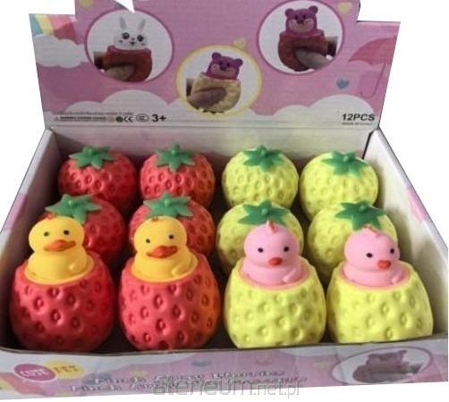 Odkryj uroczego gniotka antystresowego, który zachwyci każdego miłośnika słodkich gadżetów! Ten wyjątkowy gadżet przedstawia zabawnego kurczaczka, który wyłania się ze smakowitej truskawki - w zestawie znajdziesz zarówno czerwone truskawki z żółtymi kurczakami, jak i żółte ananasy z różowymi pisklętami, co dodaje im unikalnego charakteru. Wykonany z przyjemnego w dotyku, elastycznego materiału, jest idealny do ściskania, ugniatania i rozładowywania napięcia. Jego kompaktowy rozmiar sprawia, że możesz go zabrać ze sobą wszędzie - do szkoły, pracy czy w podróż. Gniotek ten to świetny sposób na poprawę humoru i redukcję stresu. Produkt dostępny jest w opakowaniu zbiorczym zawierającym 12 sztuk, co czyni go idealnym do dzielenia się z przyjaciółmi lub jako dodatek do upominków. Podana cena dotyczy jednej sztuki gniotka.