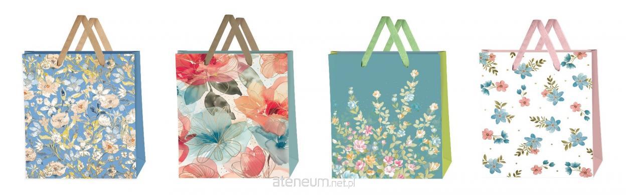 Torebka prezentowa uniwersalna M Kwiaty metal mix