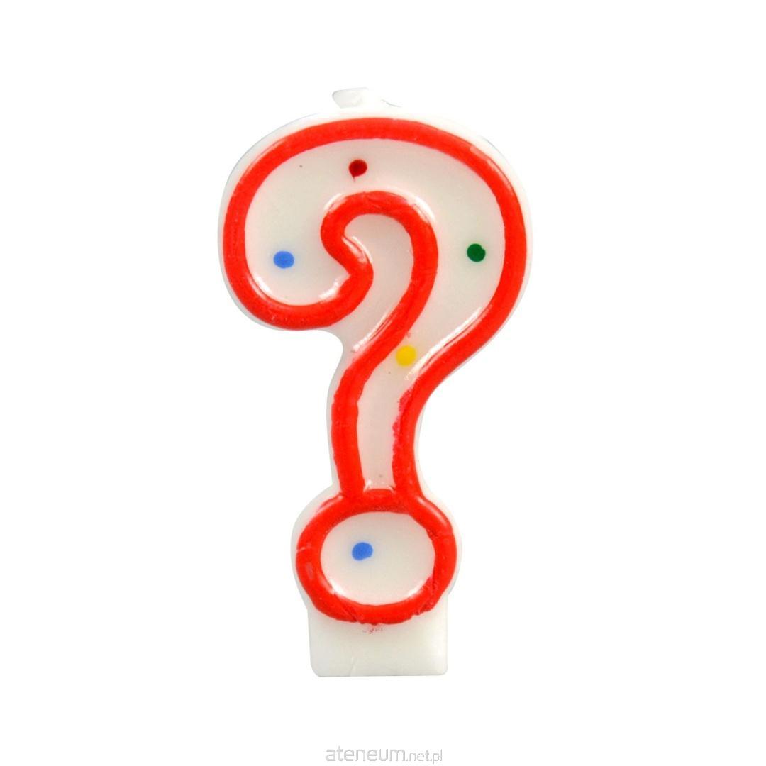 Świeczka w kropki w kształcie znaku zapytania. Wysokość świeczki 7,5 cm