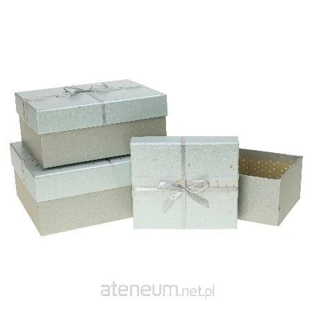 Pudełko prostokątne z kokardą 3szt zielony ROZETTE