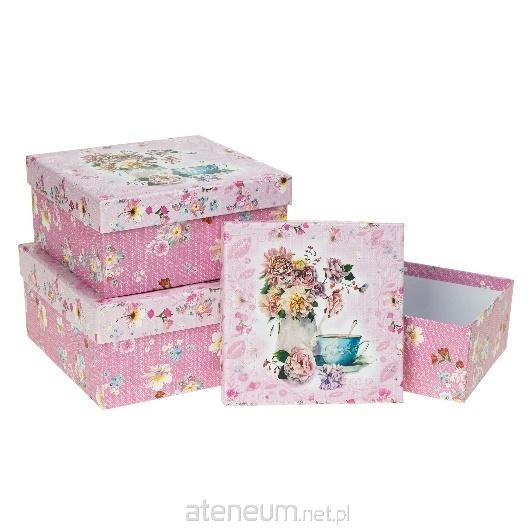 Pudełko kwadrat 3szt kwiaty krata ROZETTE