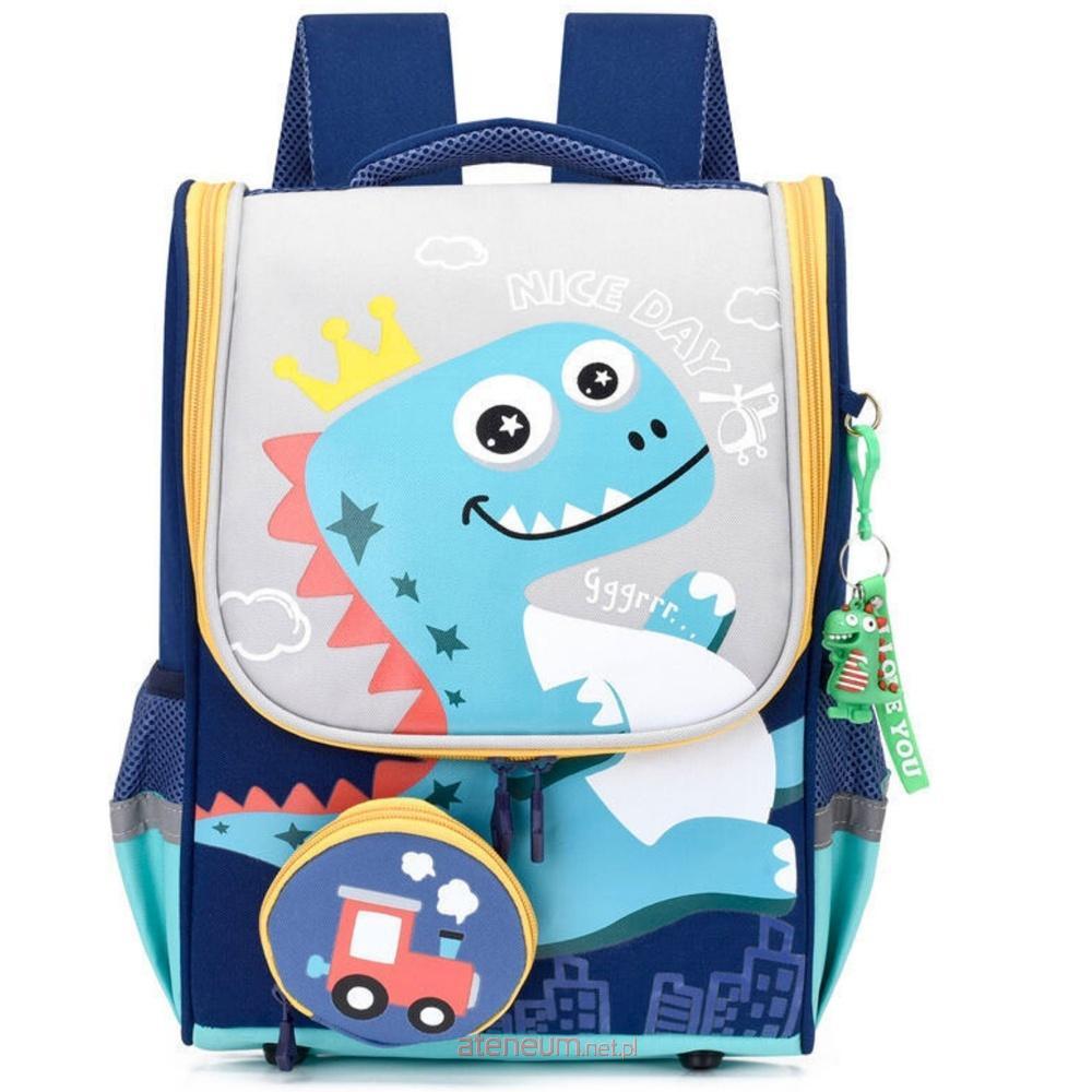 PLECAK SZKOLNY Z DINOZAUREM I ODPINANĄ SASZETKĄ Kolorowy plecak szkolny z dużą grafiką uśmiechniętego dinozaura w koronie to idealna propozycja dla młodszych uczniów. Kreskówkowy motyw i intensywne kolory sprawiają, że plecak nie tylko przyciąga uwagę, ale jest również funkcjonalny i wygodny w codziennym użytkowaniu. Plecak posiada jedną pojemną komorę główną, odpowiednią do przechowywania książek, zeszytów i przyborów szkolnych. Z przodu znajduje się odpinana saszetka z grafiką lokomotywy, która może służyć jako osobne etui lub ozdoba. Dekoracyjna zawieszka z dinozaurem dodaje plecakowi uroku i charakteru. Po bokach znajdują się dwie elastyczne kieszenie na butelki lub bidon. Plecak posiada również pas piersiowy dla stabilizacji oraz elementy odblaskowe, które zwiększają bezpieczeństwo dziecka na drodze. SPECYFIKACJA: Wymiary plecaka: 39 x 27 x 20 cm Pojemność w litrach: 21L Materiał: Trwała tkanina syntetyczna Ilość kieszeni: 3 (1 komora główna, 2 kieszenie boczne) System nośny: Usztywniane plecy, regulowane szelki, pas piersiowy Dodatki: Odpinana saszetka z lokomotywą, zawieszka z dinozaurem, elementy odblaskowe ZAWARTOŚĆ ZESTAWU: Plecak szkolny z dużą komorą