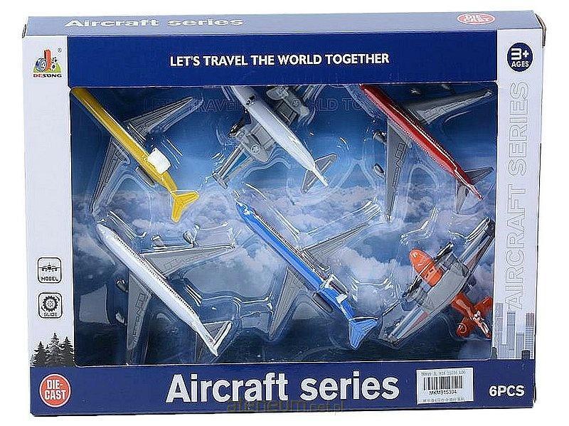 Zestaw 6 samolotów metalowych, pasażerskie; 30x20,5x4,5cm, W/B