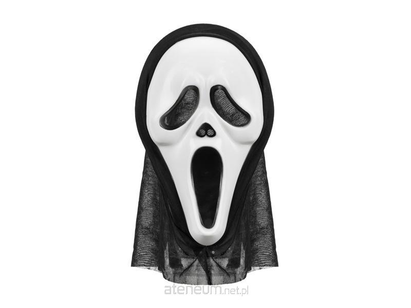 Maska z kapturem Halloween w kolorze biało-czarnym, wymiary maski ok. 18 x 31 cm, długość kaptura ok. 38 cm.