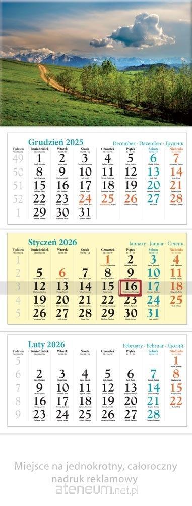 format kalendarza z "główką" i polem pod nadruk reklamowy 32 x 86 cm;
