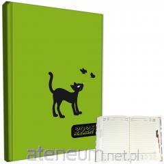 W środku miejsce na notatki, roczny planer, oznaczone wybrane święta międzynarodowe, mini kalendarium, międzynarodowe numery telefonów, strefy czasowe,