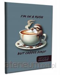 W środku miejsce na notatki, roczny planer, oznaczone wybrane święta międzynarodowe, mini kalendarium, międzynarodowe numery telefonów, strefy czasowe,