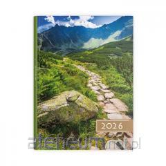 W środku miejsce na notatki, roczny planer, oznaczone wybrane święta międzynarodowe, mini kalendarium, międzynarodowe numery telefonów, strefy czasowe,