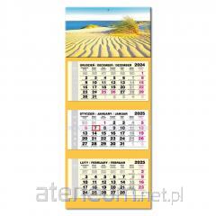 KALENDARZ TRÓJDZIELNY 2026 WYMIAR CAŁKOWITY KALENDARZA: 32 x 85,5cm GŁÓWKA KALENDARZA: Zdjęcie uszlachetniane folią błysk, z efektem wypukłości. KALENDARIUM: wym. 28,5 x 14 cm, trójjęzyczne (PL, GB, D), z numeracją tygodni i imieninami jest przytrzymywane przez kartonowe wypustki, które zapobiegają jego odstawaniu od plecków kalendarza. WYKOŃCZENIE: kartonowa zawieszka, pasek z czerwonym przesuwanym okienkiem, miejsce na notatki. WYMIAR ZDJĘCIA 32 x 22 cm ZDJĘCIE Z EFEKTEM WYPUKŁOŚCI: uszlachetnione folią błysk.